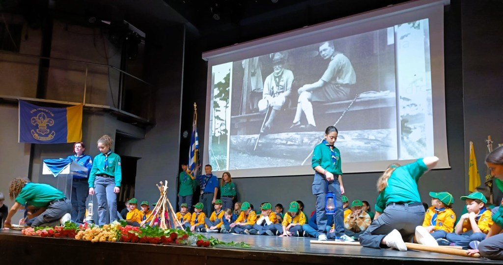 Στη συνέχεια, στο πιο ενδιαφέρον κομμάτι της εκδήλωσης, τα Προσκοπικά τμήματα παρουσίασαν τη ζωή και το έργο του ιδρυτή του Προσκοπισμού, Λόρδου Baden Powel, πλαισιωμένα από τραγούδια και επίδειξη Προσκοπικής τεχνικής, ενώ στο τέλος αυτής, όπως είθισται, όλοι οι Πρόσκοποι ανανέωσαν την Προσκοπικής τους υπόσχεση.